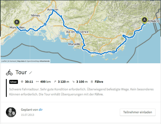 Tour 2013 – Cote d’Azur von Nizza bis Montpellier – 499KM (wobei ich dank Fahrraddiebstahl eher 350KM gefahren bin)