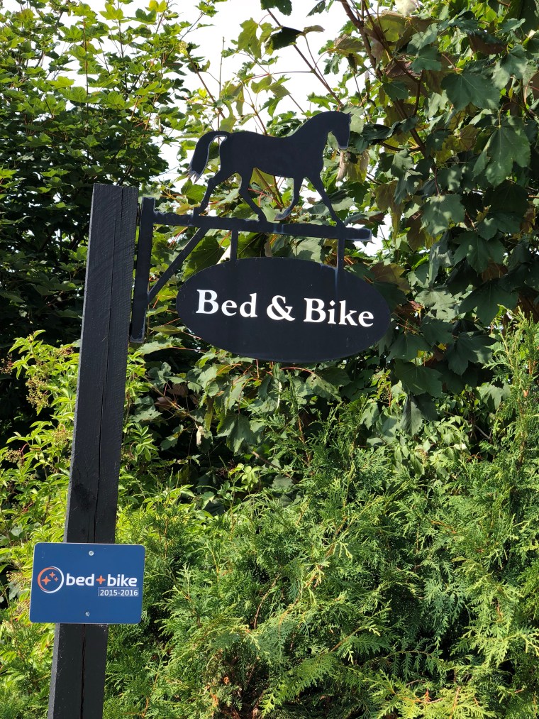 Die Unterkunft ist ein Bed & Bike. Perfekt für Radreisende. Ich hab ein Zimmer im Haupthaus oben super süß. Und an der Tür ein Willkommensschild für mich ❤️ Die Besitzerin ist auch total sympathisch!