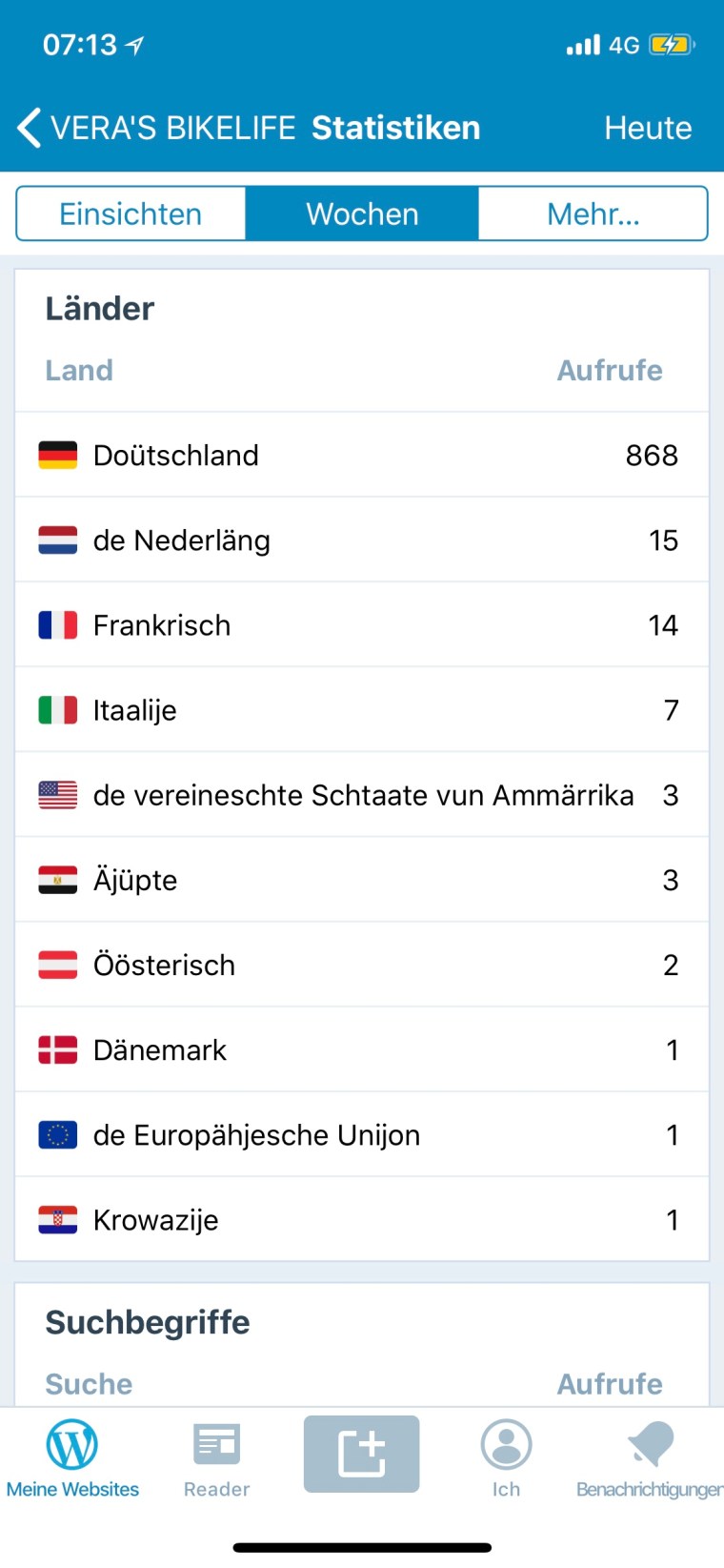 Sehr interessant auch meine Seiten-Statistik… hello Followers over the World! Trank you for following 😘