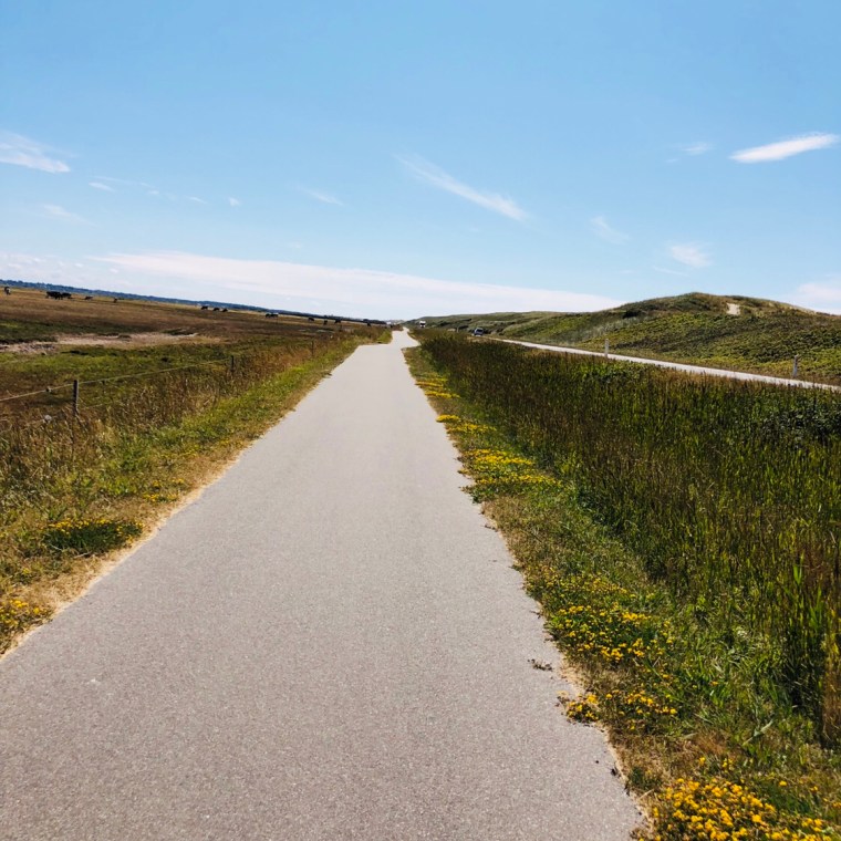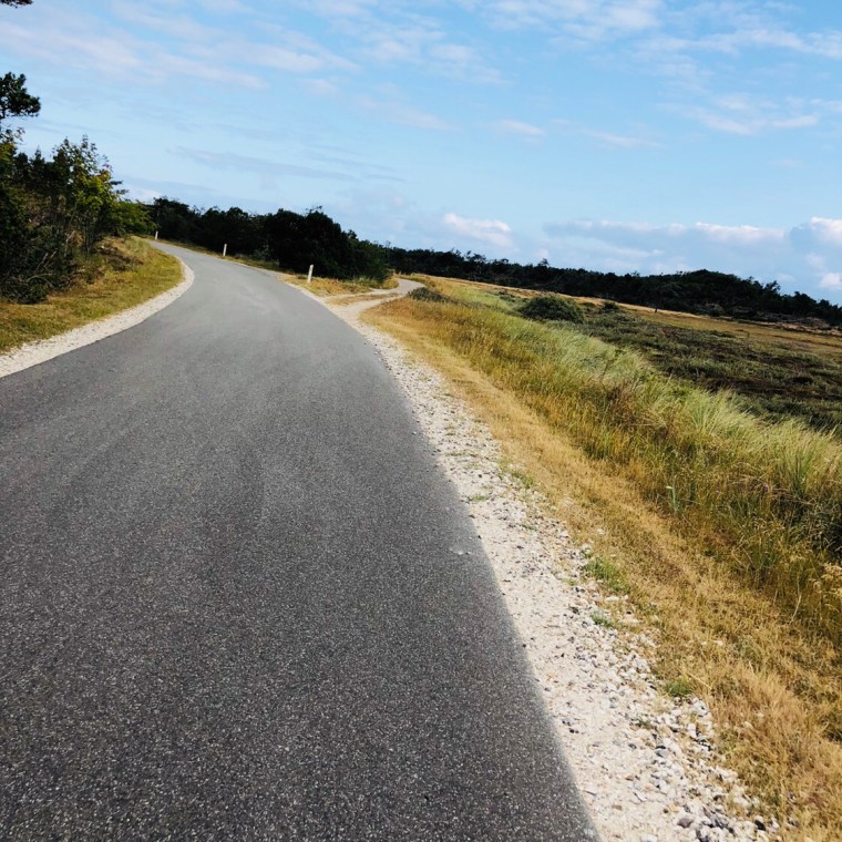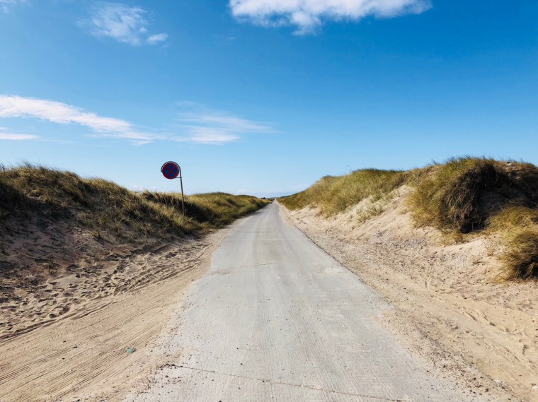 Dann fährt man zwischen Düne und Fjord gut 10 km geradeaus.