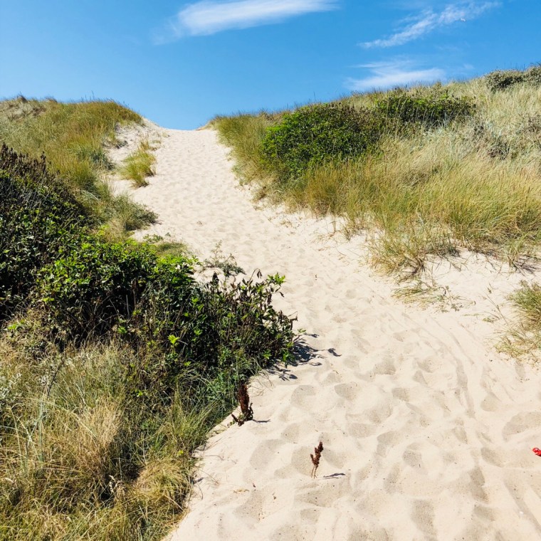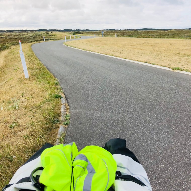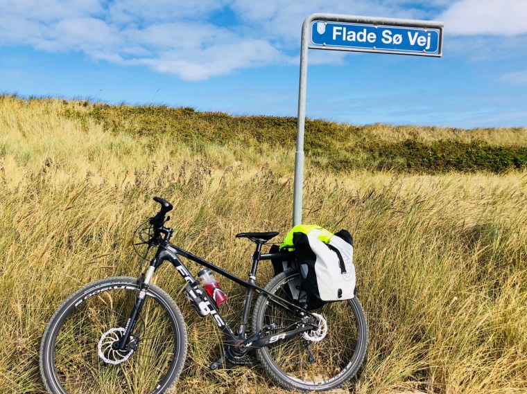 Im ersten Ort hab ich noch was zutrinken gekauft weil ich dachte bevor ich dehydriere und gleich nix mehr kommt. Dann hatte ich wieder mal den Wanderweg im Navi gespeichert, welcher hier aber wirklich offiziell auch für Räder gedacht ist. Allerdings hatte ich ja bereits berichtet: dieser hier endete in einer Sanddüne. Ich bin erstmal nach oben ohne Rad um die Lage zu checken. Tatsächlich, da führte ein richtiger Weg weiter. Und andere Radreisende standen dort und schüttelten ebenso die Köpfe über diesen Weg. Ich also wieder runter um das Bike zu holen. Ich schon an und dachte kurz evtl ohne gepäck. Da kam eine Frau den Weg lang und packe direkt an „I can push you from the back!“ super Hilfe! Sehr, sehr liebenswert diese Dänen!