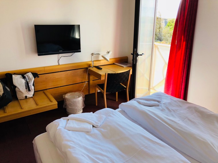 Ich übernachte im Badehotel direkt am Strand. Gibt auch ein Restaurant und der ganze Kasten hat 3 Sterne.