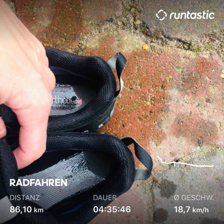 Ich bin extra früh aufgestanden obwohl ich eine kurze Nacht hatte. Bin immer wieder wach geworden weil das Bett so schmal war dass ich dacht ich falle raus! Außerdem musste ich etwas Retterspitz auf meine Knie legen weil ich befürchtete dass sie heute sonst so weh tun dass ich gar nicht treten könnte.